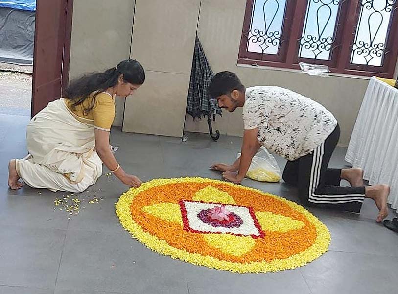 On the occasion, people working in various fields of society were honored. As part of the Onam celebrations, a beautiful floral carpet (Pookkalam) was created, and a variety of cultural programs were presented. The celebrations concluded at 2:30 PM after the sumptuous Onam feast (Onasadya).