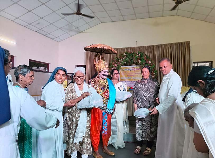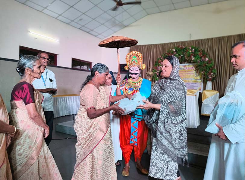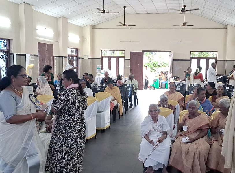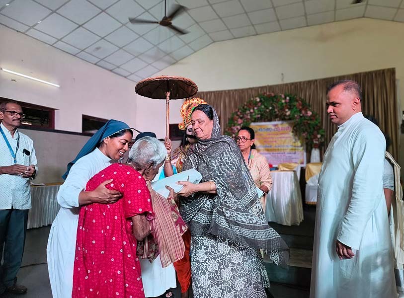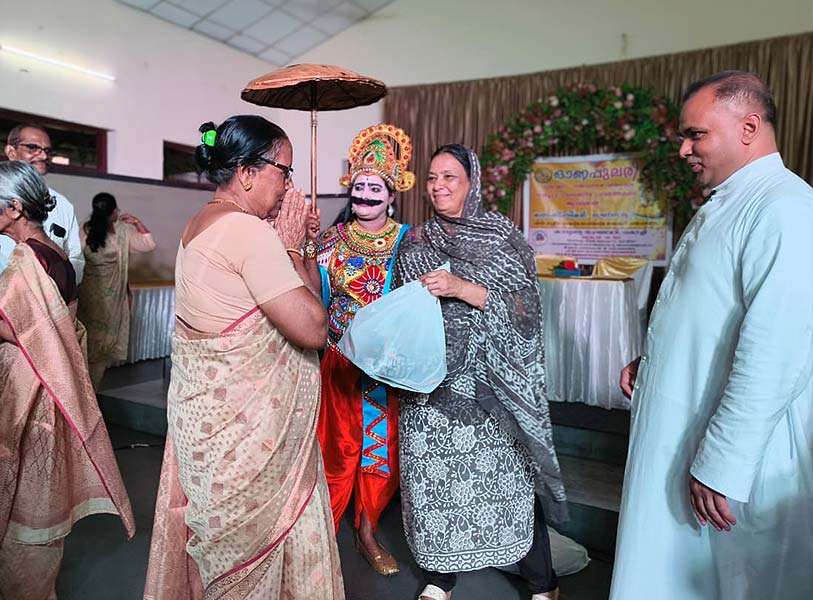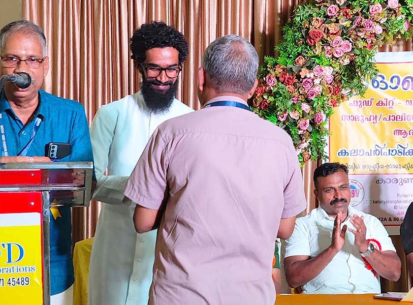 Fr. Sachin Pazerikkal, Assistant Vicar of Santhome Church, delivered the Onam message. He reminded the audience of the memories of Maveli Nadu (the legendary kingdom of Mahabali) and said that we should work together in unity for a society without lies and deceit, where everyone is embraced equally. At the event, Adv. Sibin C. Varghese, State General Secretary of Citizen – Community & Consumer Grievance Redressal Organization (C.GRO Mission), presented the ISO 9001 certification and the 80G and 12A approvals to the President of Karunya Sangha Vedi. The distribution of food kits to the elected beneficiaries was inaugurated by (Retd.) Major R. Rajesh. Onam gifts for the mothers at Karunya Bhavan were jointly distributed by Fr. Siju Paliyathra, Director of Fatima Hospital, and Mrs. Fousiya Basheer, Director of Sulekha Moosa Foundation.