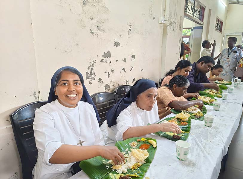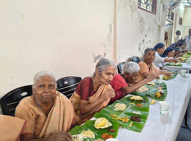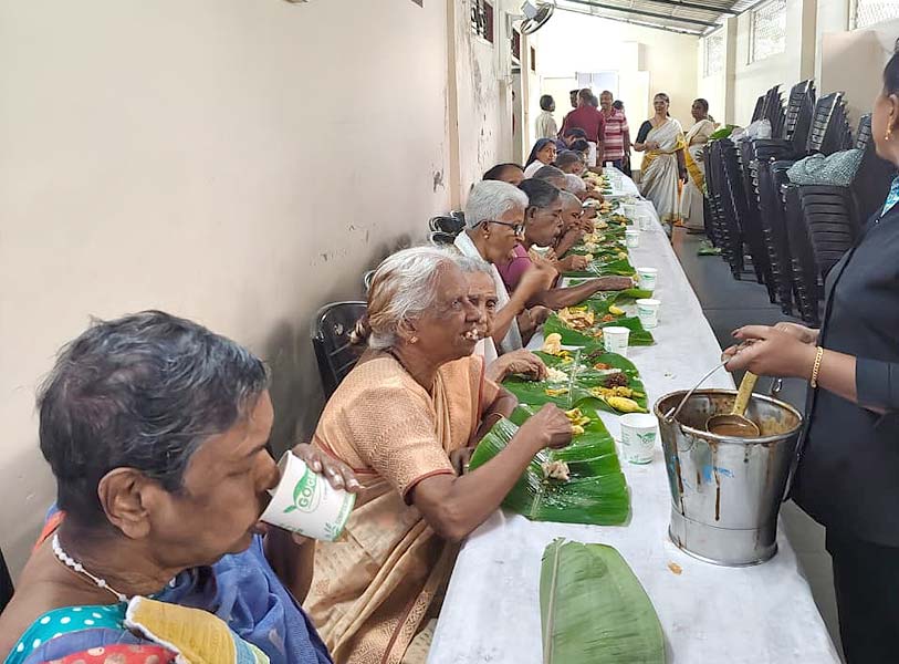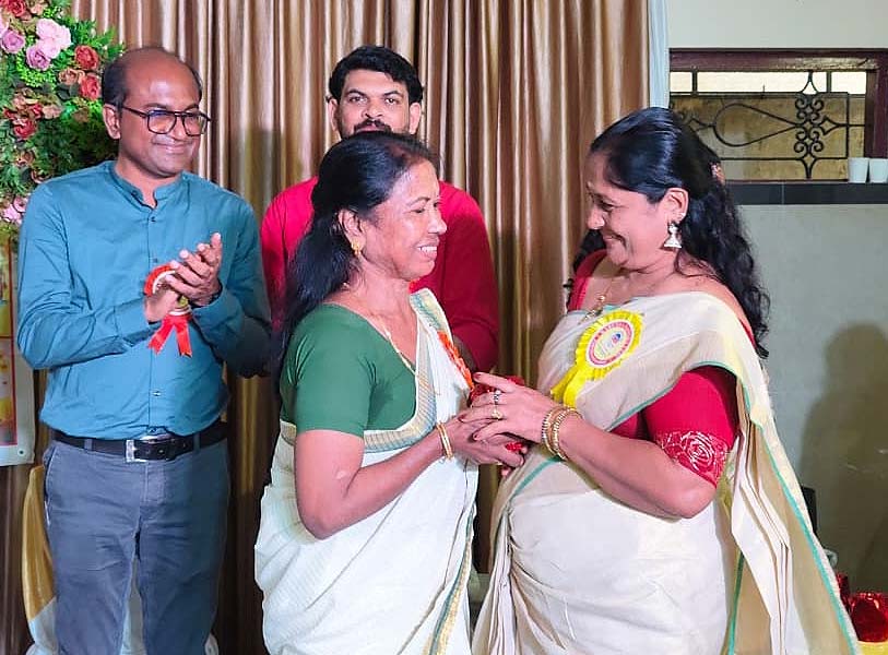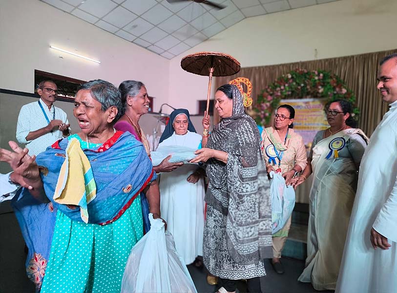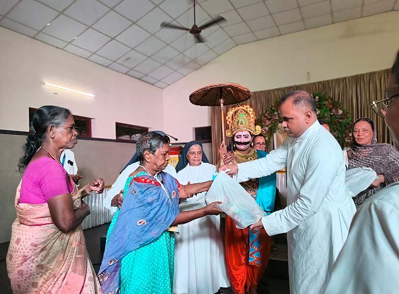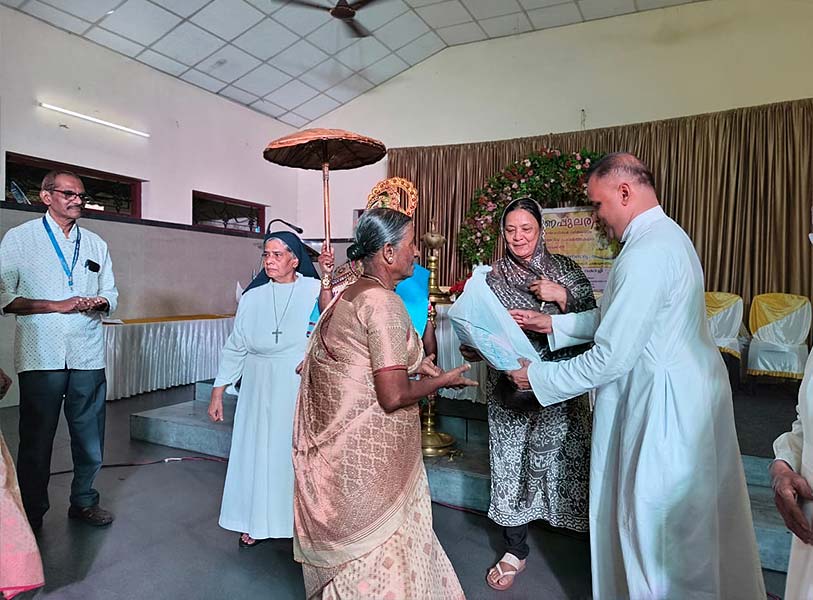 Fr. Sachin Pazerikkal, Assistant Vicar of Santhome Church, delivered the Onam message. He reminded the audience of the memories of Maveli Nadu (the legendary kingdom of Mahabali) and said that we should work together in unity for a society without lies and deceit, where everyone is embraced equally. At the event, Adv. Sibin C. Varghese, State General Secretary of Citizen – Community & Consumer Grievance Redressal Organization (C.GRO Mission), presented the ISO 9001 certification and the 80G and 12A approvals to the President of Karunya Sangha Vedi. The distribution of food kits to the elected beneficiaries was inaugurated by (Retd.) Major R. Rajesh. Onam gifts for the mothers at Karunya Bhavan were jointly distributed by Fr. Siju Paliyathra, Director of Fatima Hospital, and Mrs. Fousiya Basheer, Director of Sulekha Moosa Foundation.