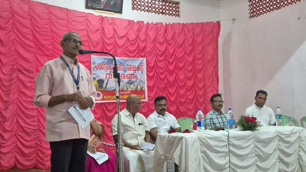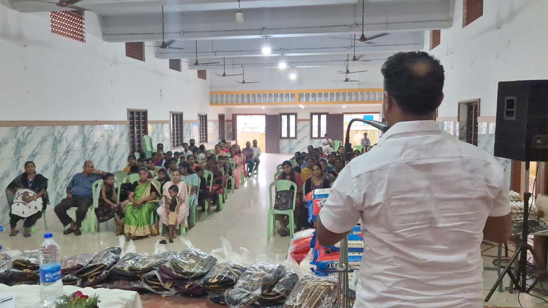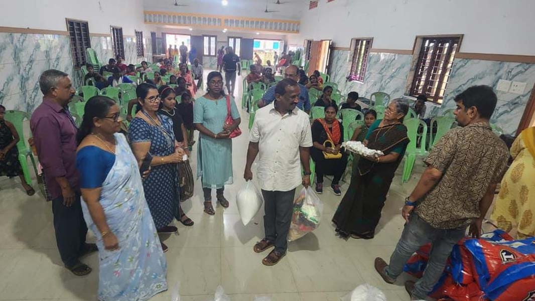 Retired Major R. Rajesh, who delivered the keynote address, stated that the work of Karunya Sangha Vedi is exemplary, and the organization operates in a well-coordinated and disciplined manner. Fr. Shabu Dennis, vicar of St. Michael's Church, Manassery, delivered a blessing speech. He stated that only those with compassion can engage in humanitarian service, and that the assistance and support provided to communities affected by natural disasters are of great significance. Speakers at the event included Division Councillor Mr. A. P. Antony, Karunya Sangha Vedi General Secretary Mr. P. G. Lawrence, Vice President Mrs. T. P. Sophia, and Program Coordinator Mr. P. P. Jacob. Other participants and speakers included former president Mr. P. K. Nadeshan, Mrs. Joyce Antony, Mr. P. D. Suresh, Mr. James Panakkathara, Mrs. Missouri Sam, Mr. Zakir, Mr. T. J. Jain, Mr. Antony Palluruthy, Mrs. Chandini Ronald, and Mrs. Gigi Jacob.